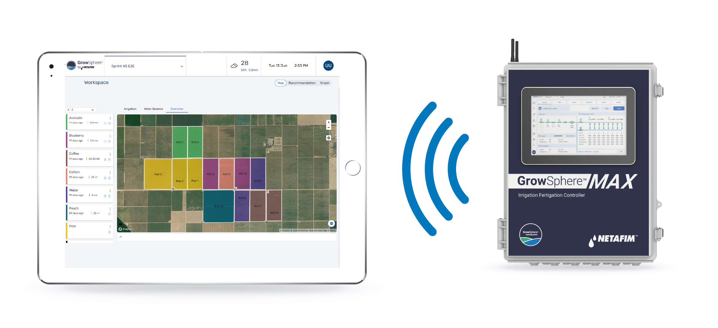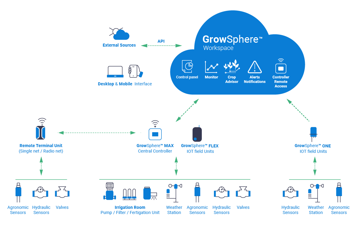 All our controllers are connected to the GrowSphere™ OS, an intuitive visual work tool that makes it easier to plan, monitor, and execute your irrigation with greater transparency and reliability. So you can minimize your operating costs while improving your yields - with a lot less effort.