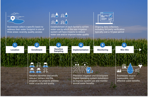 By connecting businesses with local farmers in designated basins, we implement drip irrigation systems that reduce water use and improve.water quality - thus saving valuable resources and promoting sustainable agriculture.